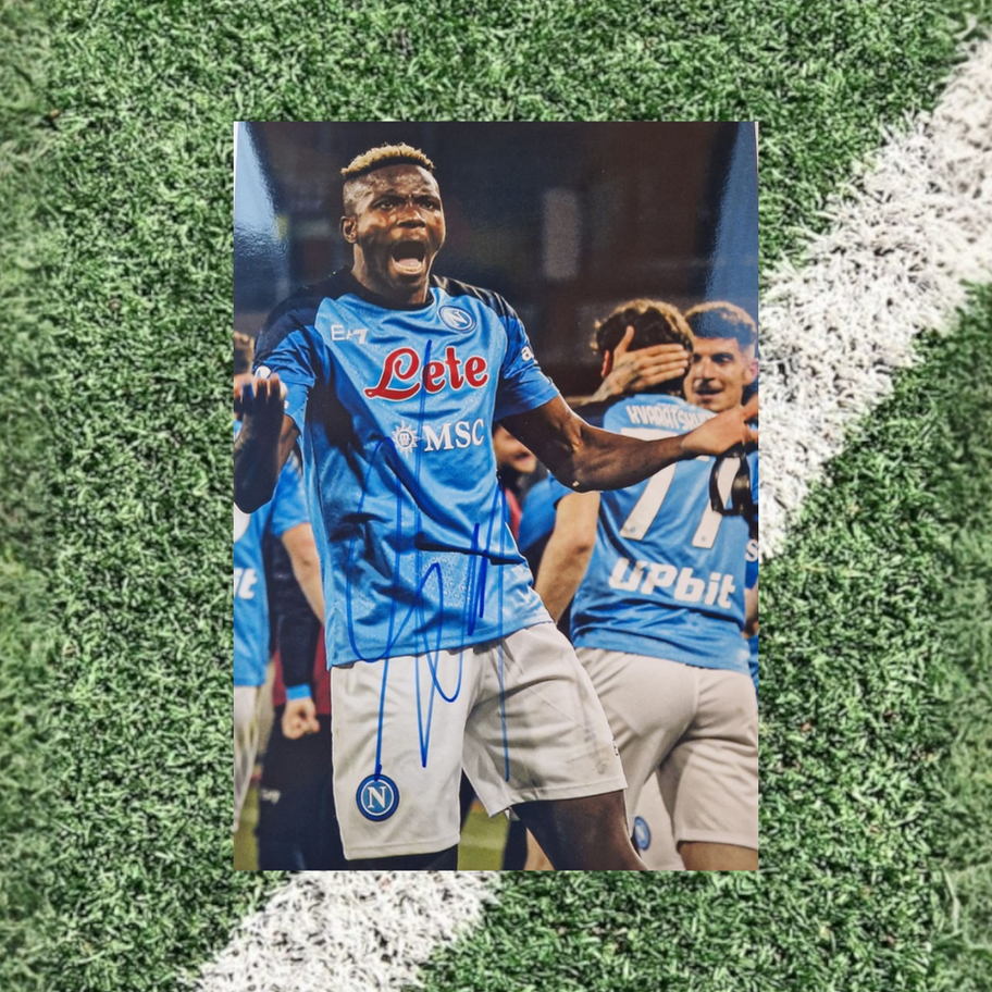 Victor James Osimhen is widely regarded as one of the best strikers in the world. Osimhen is known for his explosive pace, physical strength, aerial ability, and clinical finishing, this 12x8 picture was personally hand-signed by Victor Osimhen.